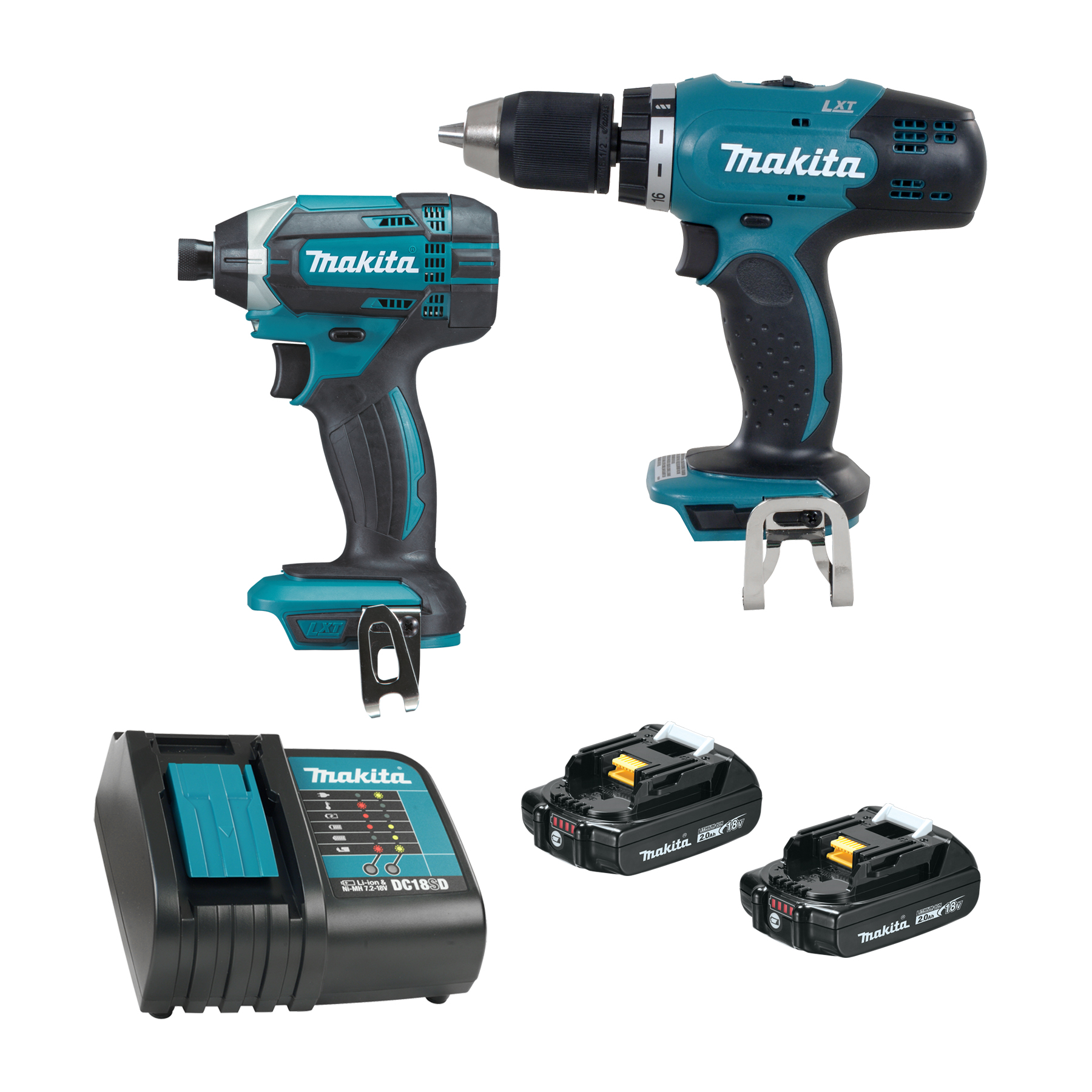 (P) Makita 18V LXT Drill-Driver & Impact Driver Kit W/2 Batteries (2.0Ah), Charger & Bag